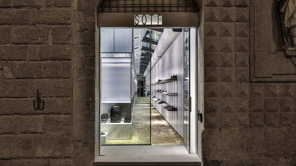 Ognuno di noi è abituato ad entrare ed uscire da ogni tipo di punto vendita. Raramente il consumatore medio e pure l’addetto ai lavori viene colpito da qualcosa, visto che il livello medio della qualità dei punti vendita sale sempre, ma raramente chi vende si prende qualche rischio. Chi ha creato il nuovo punto vendita di SOTF, nell’Olimpo di Via Tornabuoni a Firenze, ha deciso di puntare dritto sull’innovazione. Lo spazio è stato aperto a metà settembre 2016. E’ un lungo corridoio in cui da una parte si susseguono sneaker d’autore esposte quasi come fossero opere d’arte d’un museo. Dall’altra invece ci sono diversi ‘camerini’ in cui chi lo desidera può provarle interagendo attraverso dei tablet digitali. Ad avvolgere senza travolgere acquirenti e curiosi c’è un sound elettronico non troppo aggressivo diffuso tramite un impianto Sonos che dà il giusto spazio alla musica. Non mancano subwoofer ed altri diffusori, e soprattutto ogni ‘camerino’ è dotato di una cassa acustica ben visibile. La musica diventa così parte dell’esperienza d’acquisto e non solo un pressoché indistinguibile e forse quasi del tutto inutile sottofondo. (foto tratta da Firenze Today)